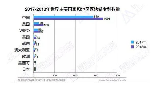 根据国家知识产权局的统计,截到2018年8月,世界主要国家的区块链专利数为1300多件,中国年度公开的区块链专利数已经达到了1065件。