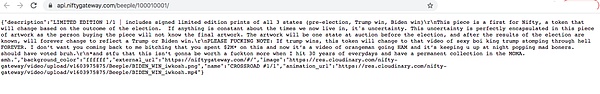 这意味着,如果 Nifty 平台破产并关闭其服务器,Crossroad NFT 的所有者将只剩下一个指向已失效 HTTP URL 的代币。附加到 NFT上 的元数据和图像,都要依靠 Nifty 能够持续运行才行。
