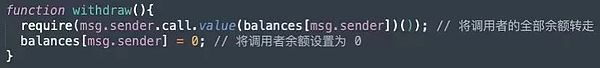 上述代码片段就是最简单的提款操作,接下来会给大家详细分析重入攻击造成的原因。