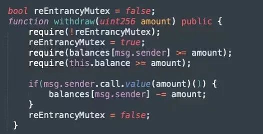 互斥锁就是添加一个在代码执行过程中锁定合约的状态变量以防止重入攻击。