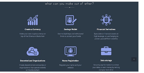 自以太坊诞生以来,代币、衍生品、域名注册以及 DAO 一直都是其链上功能的一部分。上图截自 2014 年的 Ethereum.org
