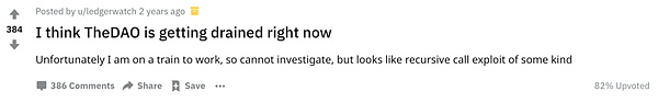 Alexey Akhunov 发现了 TheDAO 的异常并发布在 Reddit 上,这成为了一篇 有历史意义的帖子