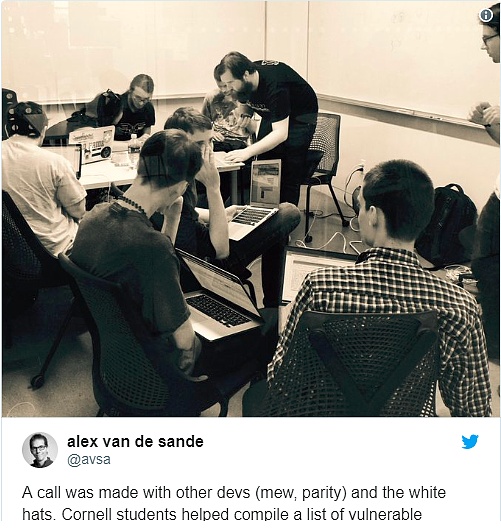 2017 年中期 Parity 多签名钱包事件被发现以后,核心贡献者的推特
