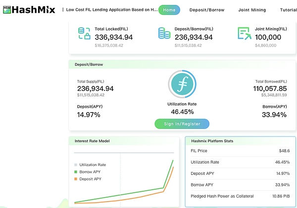 例如HashMix项目就通过自己强大的链上数据库以及算法设计,可以做到仅拥有矿工在质押节点owner的情况下提供FIL借贷,这种利用链上信息进行FIL借贷,并且浮动利率的项目很适合未来FIL生态内生Defi的玩法。(严格意义上说,HashMix并不属于Filecoin内生Defi。)