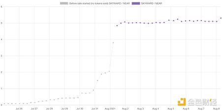 在不久前结束的两个阶段$SKYWARD 通证销售中,Skyward 出售了 45% 的通证,共募集到约 228 万个$NEAR。按当前价格相当于约 615 万美元,使 Skyward 总市值达到约 1400 万美元。而 NEAR 平台 DEX 项目 Ref Finance 更是通过 Skyward ID0 出售 2.5% 的通证,募集了 76.7 万个$NEAR、49.6 万个 DAI 和 102 个 ETH,按当前价格相当于约 287 万美元,使 Ref Finance 总市值达到约 1.15 亿美元。从 8 月中开始,NEAR 生态多链网络项目 Octopus 将通过 Skyward ID0 出售 2.5% 的协议原生通证$OCT。Skyward 是否能够延续其火爆开局,让我们拭目以待。