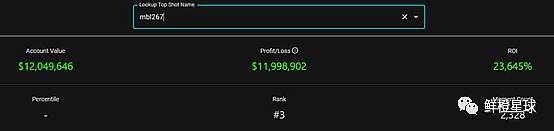 Michael Levy现在依然是Top shot上面最大的个人账户,他的账户从3月最高点已经跌到了1千2百万,跌幅超过40%,但 ROI依然高达23,643%