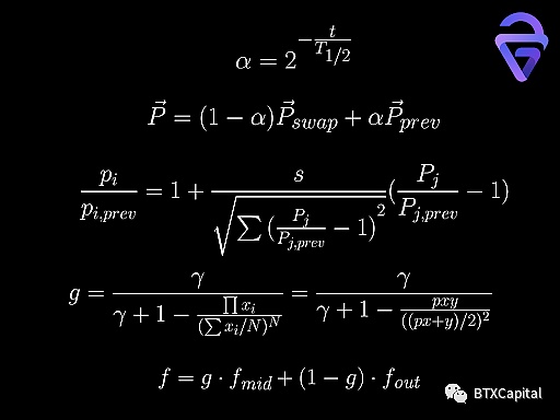 Curve V2 在 2 代币池中的做市商函数: