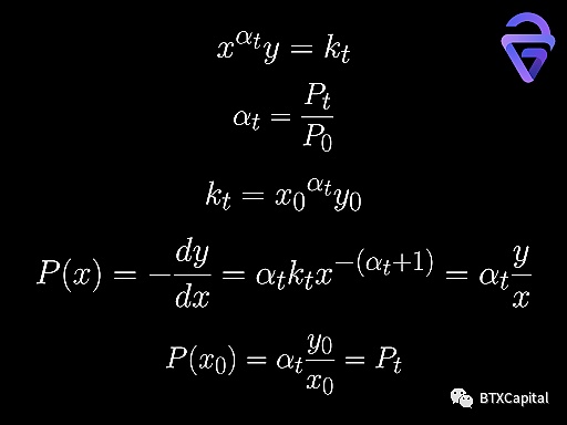 (x0, y0) 处的价格将始终是设计的当前市场价格 Pt。这在概念上确保套利总是将流动性池带回到点 (x0, y0)。由于此功能,无常损失将为零。然而,实际上,该算法没有足够的参数来拟合当前储备(x,y)和(x0,y0)。这意味着我们必须等待流动性池回到 (x0, y0),然后更改做市商函数。