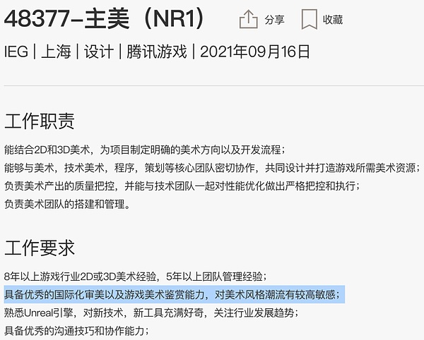 此外,在毛星云的文章中,有关天美跨平台3A大作产品定位的关键词包括:开放世界、玩法众多、面向全平台、全球协同开发、Unreal引擎、写实画风……
