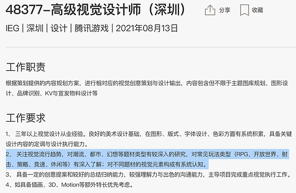 2、开放世界、玩法众多。岗位要求:高级视觉设计师:关注视觉流行趋势,对潮流、都市、幻想等题材类型有较深入的研究,对常见玩法类型(RPG、开放世界、射击、策略、竞速、休闲等)有深入了解。