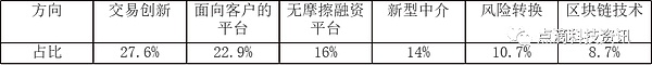 目前,ARK金融科技创新基金的规模为40亿美元,从其资金投向来看,交易创新占比27.6%、面向客户的平台22.9%、无摩擦融资平台16%、新型中介14%、风险转换10.7%、区块链技术8.7%。