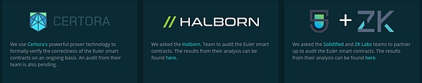 目前Euler已相继完成由Solidified和ZK Labs以及Halborn进行的智能合约审计,均未发现关键漏洞。
