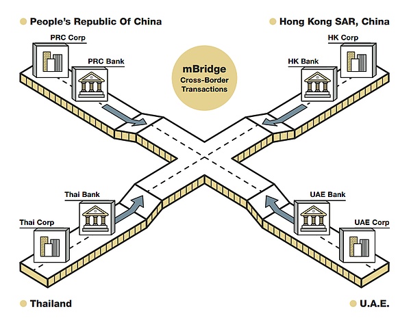中国人民银行数字货币研究所担任货币桥项目技术委员会主席,搭建了货币桥测试平台。中国工商银行、中国农业银行、中国银行、中国建设银行、交通银行、中国邮政储蓄银行、中国外汇交易中心以及汇丰银行、渣打银行、香港交易所、泰国银行业协会等共22家境内外金融机构及组织参与项目本期测试,交易涵盖四个司法管辖域及11个行业场景,交易总额超过20亿元人民币。
