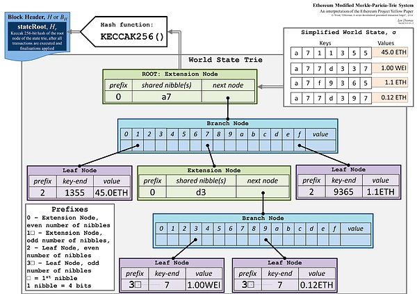 以太坊状态是一个Merkle Patrica树(MPT),其中