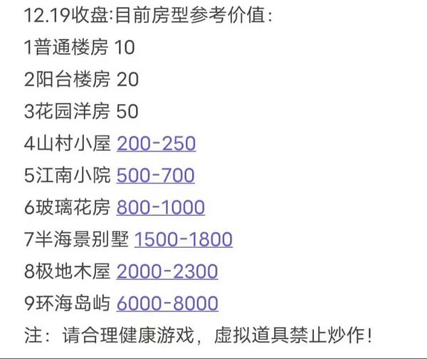 玩家们在群里讨论虚拟房价