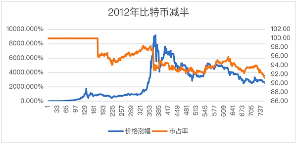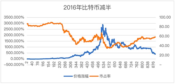 图2 2012年及2016年比特币减半价格涨幅与市场占有率