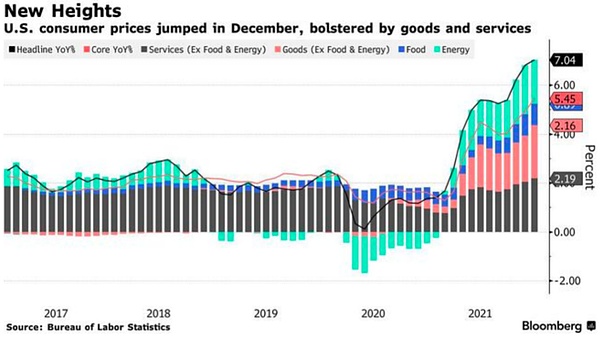 2021年美国全年通胀高企,这一现象是由供应链、薪酬上涨以及货币宽松等多项因素综合而引起的。同时,由于货币的流动性充足,美国在2021年还经历了经济由衰退到增长的变化。