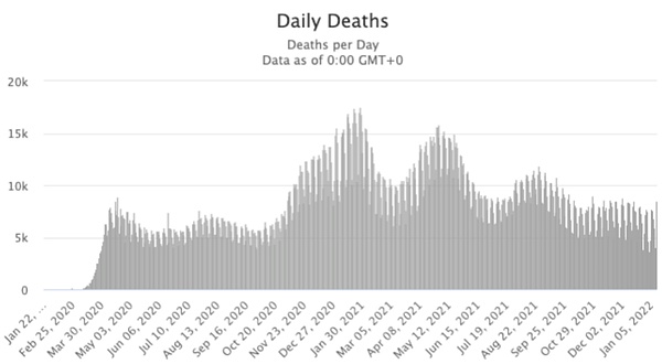 图5 全球新冠疫情每日致死人数
