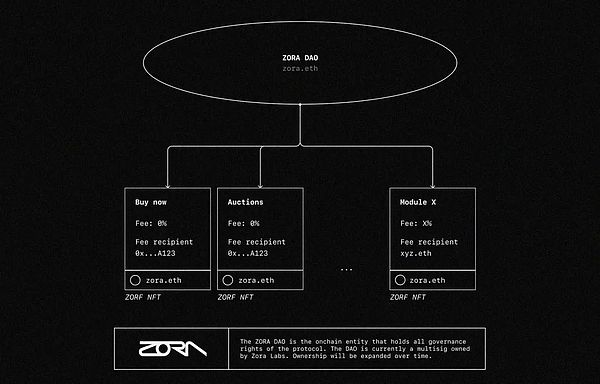 Zora DAO 正在浮出水面,现在它还是由Zora Labs控制的多重签名,它拥有部署新版本协议的治理权,以及持有着Zora 费用 NFT(ZORFs)。