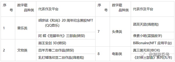 2021年各大平台发行数字藏品种类繁多,包含到了各种文化类型: