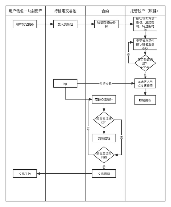 如图所示,一笔从目标链提币到原链的交易流程如下:
