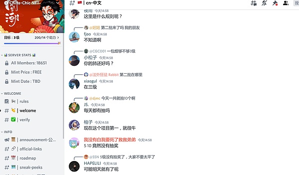 项目方可能感受到中国文化可以做成NFT,市场潜力巨大的机会,再者结合一些潮流元素,这样的启发,国潮NFT应运而出。各大博主及NFT爱好者们纷纷力推ChinaChic NFT,短短10天时间discord社区已经2万人,并且热度持续升高。