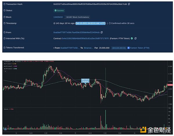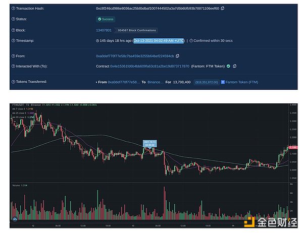 2021 年 10 月 15 日,0x431钱包向币安发送了2000 万 FTM代币(价值2600 万美元),然后在接下来的4个小时内,FTM代币的价格下跌了6.2%。