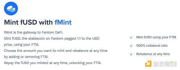 为了保护 fantom 网络,FTM使用Fantom 基金会网站进行质押。这些质押的FTM 可用于铸造sFTM,然后以此为抵押品铸造fantom原生“稳定币”FUSD。