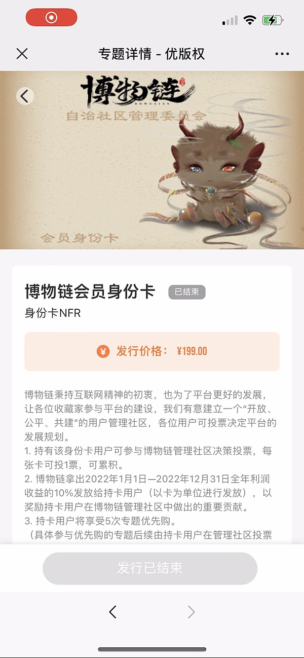 玩法跟唯一接近,但青出于蓝,除了优先购、空投等权益外,平台还发售了一个身份卡,这个图片的持有者可以拿到平台2022年全年利润的10%。
