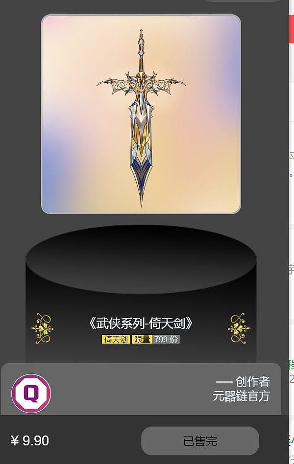 大家看看就好,不必深入了解,看看这粗糙的界面,难以理解的配色,这把绝世倚天剑,我上初中的表妹画的都比他好,但是依旧售罄,只能说国内投机者们是真的猛。