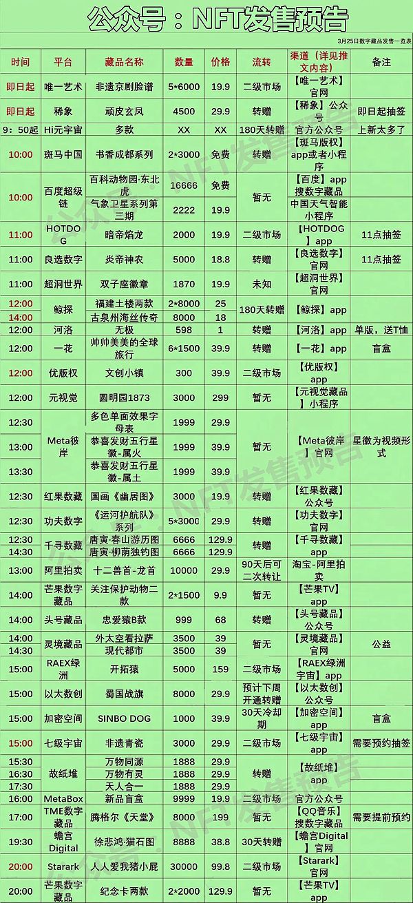 Meta彼岸将于3月25日 12:30 13:00 13:30 推出《多色单面效果字母表》《恭喜发财五行星徽-属火》《恭喜发财五行星徽-属土》共3款数字藏品。