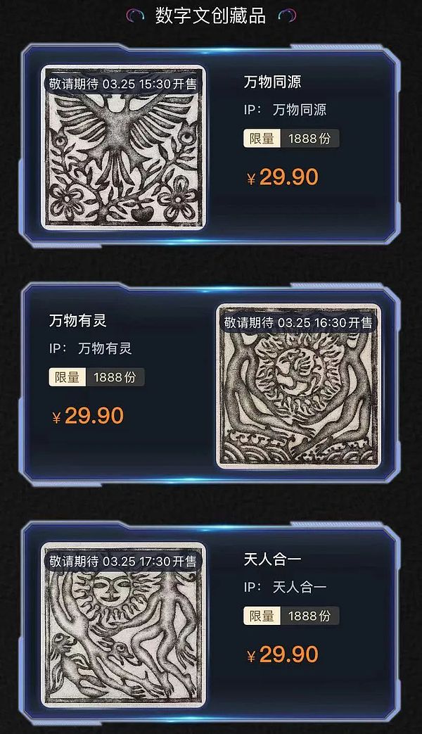 故纸堆 APP将于3月25日 15:30、16:30、17:30推出《万物同源》、《万物有灵》、《天人合一》共3款数字藏品。