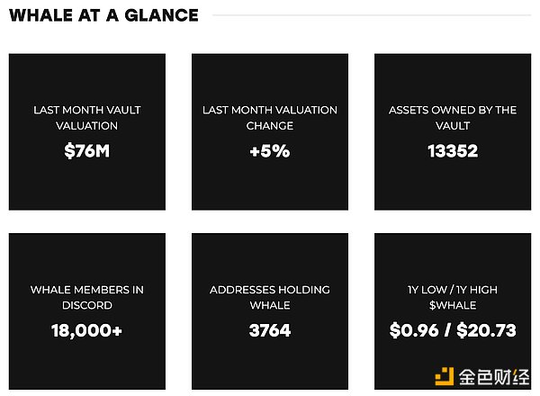 WHALE 是又一个艺术主题的代币。WHALE 由 NFT 收藏家WhaleShark 于 2020 年夏天发行。与 WHALE 代币相关的 WHALE vault 已增长到 7600 万美元估值。与 ASH 代币不同,WHALE 代币没有任何特殊的销毁 / 铸造功能——用户可以通过在二级市场上购买或在 Discord 上从现有持有者处购买。