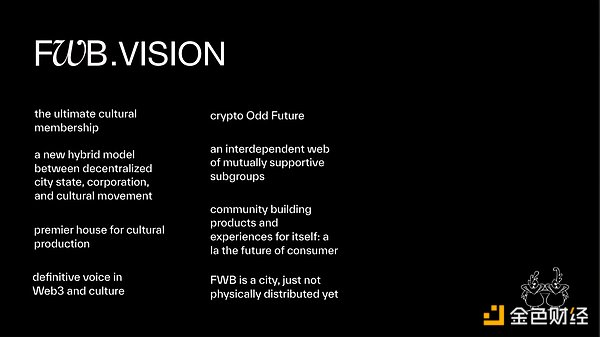 以上项目中愿景最远大的是 Friends With Benefits。FWB 是建立 Balaji Srinivasan 所谓的网络国家的最早尝试之一,这是一个「高度一致的在线社区,具有集体行动的能力,可以在全球范围内众筹并最终获得当前国家的外交认可。」