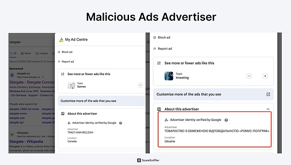 最近几周ScamSniffer陆续收到多个用户被搜索广告钓鱼的案例,他们都无一不例外错点了Google的搜索广告从而进入到恶意网站,并在使用中过程签署了恶意签名,最终导致钱包里的资产丢失。