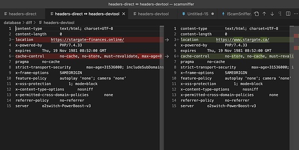对比分析我们发现他们是通过请求头 cache-control 的差异来跳转到不一样的连接,在开发者工具开启Disable Cache后会导致请求头有细微差异。除了开发者工具外,一些爬虫可能也会开启这个头保证抓取到最新的内容,这样一来就又是一种可以绕过一些Google的广告机器审核的策略。