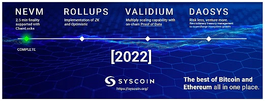Syscoin 由 SYSLab 团队分叉 BTC 源码进行开发,旨在同时利用 BTC 的安全性兼容以太坊生态。目前,SYSLab 团队已上线 NEVM (Network-Enhanced Virtual Machine),利用 BTC 的 PoW 的安全性构建的虚拟机,兼容以太坊智能合约。此外,SYSLab 团队还计划上线 ZK 和 Optimistic 的 Rollup、携带链上数据证明 (Proof of Data) 的 Validium 等项目。Syscoin 项目信息较少,难以从技术上评估其优劣,不过其源代码库更新频繁,还在稳定开发之中。