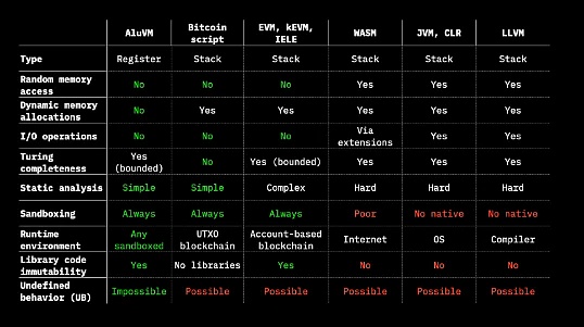 RGB (Really Good for Bitcoin) 是一个集成了闪电网络的 BTC 智能合约系统,由 Giacomo Zucco 和 Peter Todd 于 2016 年提出。RGB 利用 BTC 来维护抗审查性和对抗双花攻击。在 RGB 中,所有代币的交易和验证工作都放在链下处理,只需要接收支付的一方进行客户端验证。客户端在 BTC 中对支付方的资金来源进行核查,确定是有效交易后,直接修改交易双方的 UTXO,而不需要把交易数据写入区块链中,具有保护隐私的特性。除此之外,客户端能够直接引入智能合约的功能,对交易进行规则判断,并且因为不需要全局状态共识,因此智能合约的数据不需要上链,也能保障隐私特性。RGB 社区已开发出图灵完备的智能合约虚拟机 AluVM (algorithmic logic unit VM),具有很不错的可扩展性、安全性和隐私保护性。