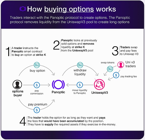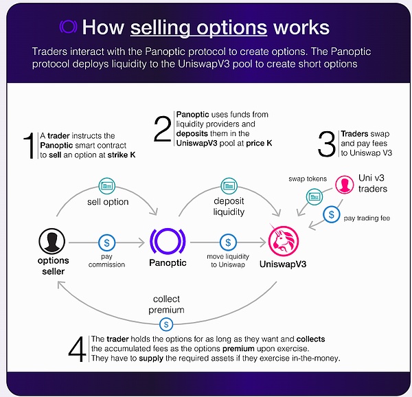Panoptic智能合约可直接与Uniswap v3的核心合约接口,从而创建期权市场。