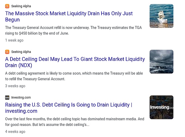 在短期内,最大的问题似乎是债务上限、美国财政部余额补充等问题,会对市场流动性和风险资产产生什么影响。