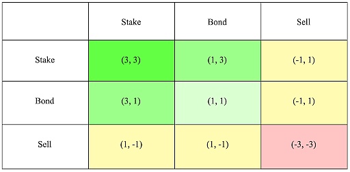目前, Token 项目的激励还是主要依赖于代币,博弈论很早就进入了代币经济的领域。例如, Olympus DAO (OHM) 试图创建一个由加密而非美元支持的全球稳定币资产,它使用质押作为为其Token OHM 增值以实现价值存储状态的主要方式,该策略称为 (3, 3),其灵感也是来源于博弈论。