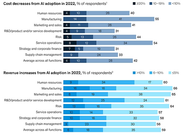 总体而言,只有 23% 的受访者表示,去年公司至少有 5% 的息税前利润归因于对人工智能的使用。这表明还有更大的上升空间。