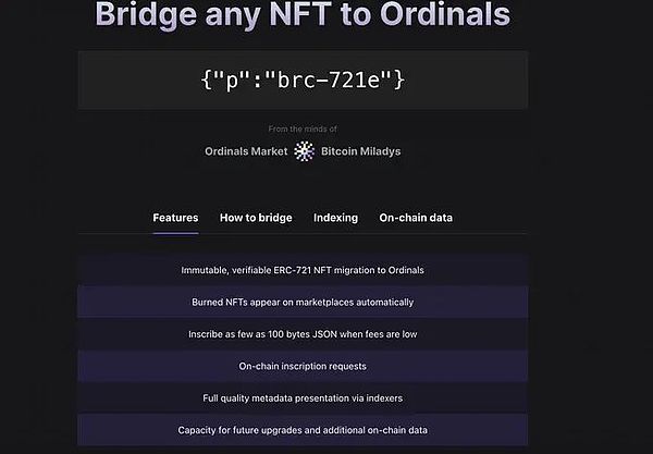 详情:通过单向桥将你的 ETH NFT 与比特币(Ordinals)连接起来,并通过自定义集合在 Ordinals 市场上售卖。