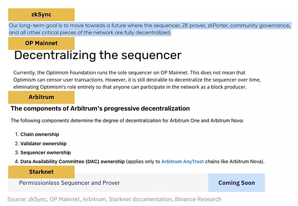 部分主流 L2 的去中心化排序器规划 来源:Binance Research