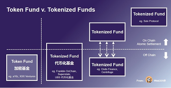 这种创新和颠覆也同样适用于基金,将基金进行代币化之后,形成了代币化基金(Tokenized Fund),是指基金份额以代币的数字化形式记录在区块链分布式账本中,代币可供二级市场交易。这种代币化基金区别于仅仅是投资于一级、二级市场的加密基金(Token Fund)。