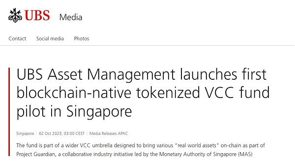 [5] UBS Asset Management launches first blockchain-native tokenized VCC fund pilot in Singapore
