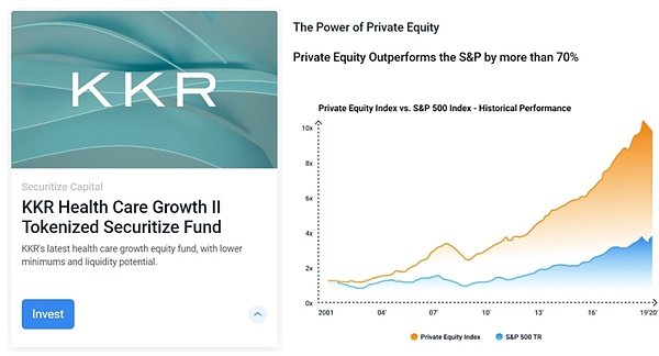 从投资者的角度,私募基金的代币化,为他们提供了一个投资顶级私募基金的低门槛机会(私募基金的收益率表现远远高于 S&P 指数收益率的 70%)。大型机构投资者和超高净值个人参与 KKR 基金的门槛要求,通常是数百万美元,而个人投资者此次通过这个“代币化”的 Feeder Fund,投资的最低门槛降到了 10 万美金。