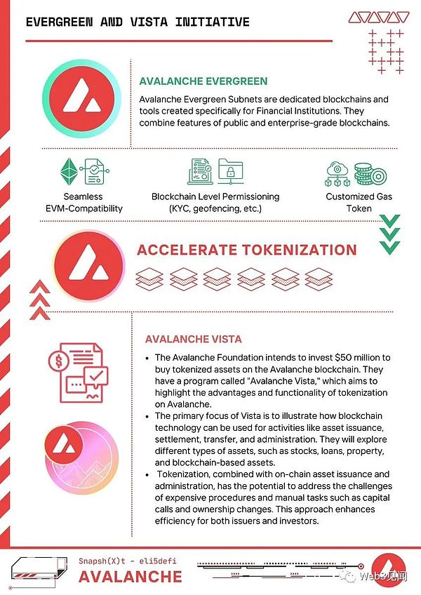 · Avalanche 强大的子网基础设施将实现代币化的真正愿景。最近推出了一些举措来支持这一点,例如 Evergreen 和 Vista。