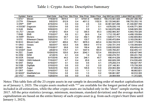 文章采用的数据集由23种未获得其他资产支持的加密资产的每日价格数据和15个金融变量组成,时间跨度为2015年10月14日至2023年1月1日。