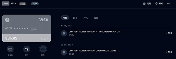 大部分加密支付卡的卡号以 4 或 5 开头,隶属于美国的卡组织(VISA / Master / 运通等),完美满足 OpenAI 对于卡种的要求,可以将加密货币转换成美金完成充值。